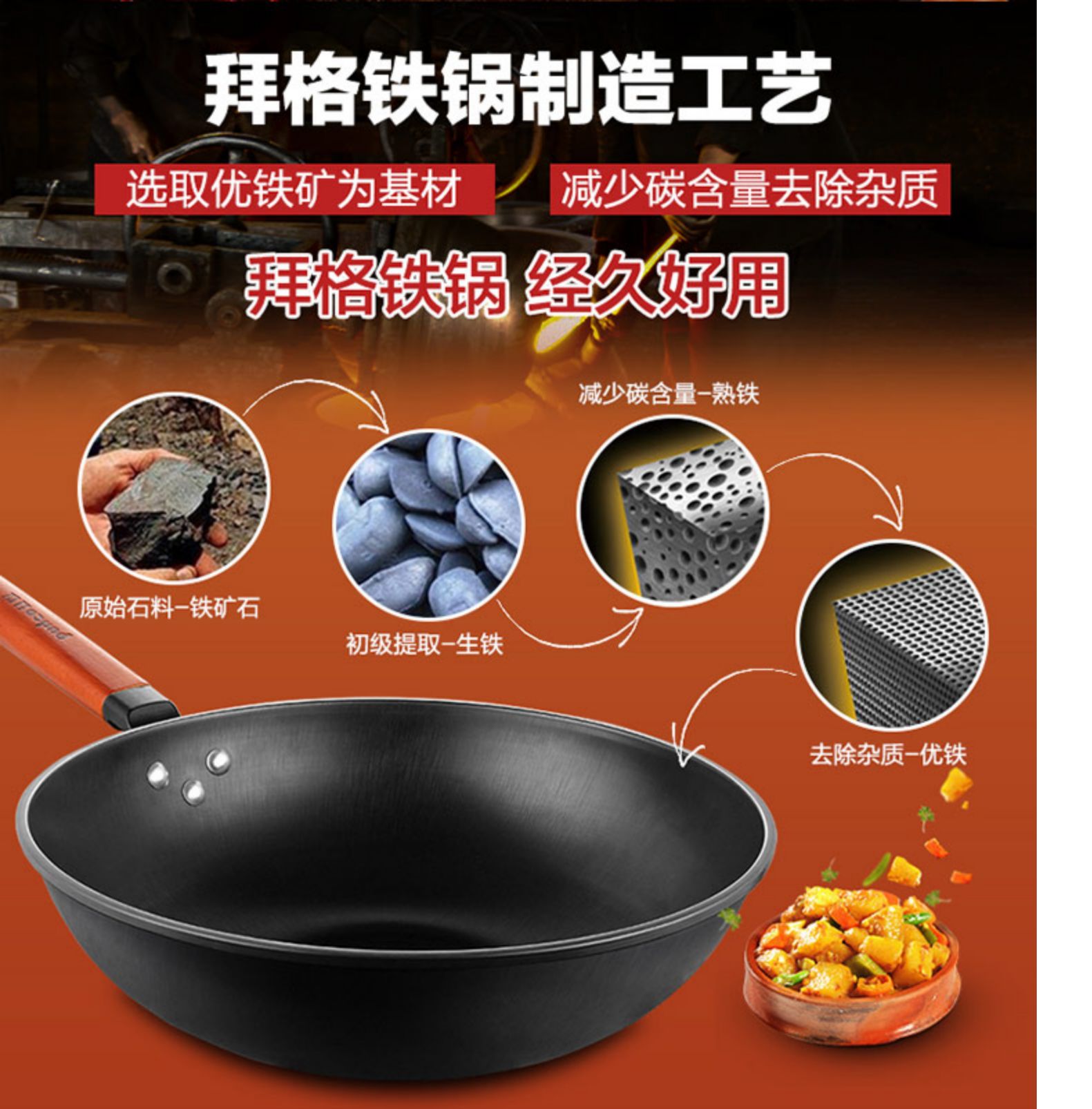 • 山东章丘纯手工锻打铁锅正宗老式手打不粘锅官方旗舰商丘炒锅家用