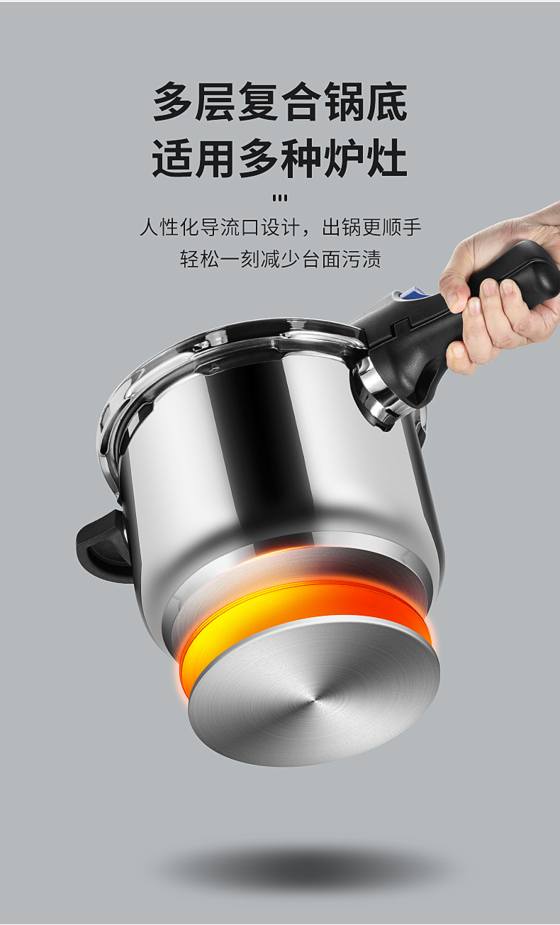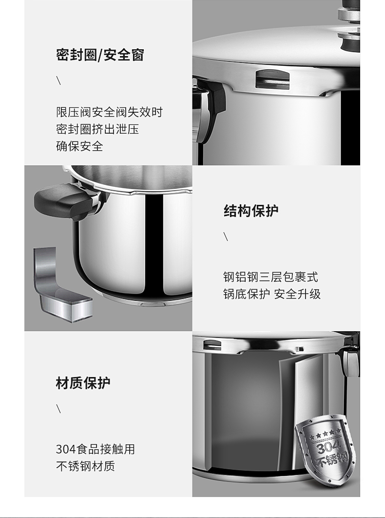• 炊大皇高压锅家用304不锈钢加厚防爆压力锅大容量燃气电磁炉通用