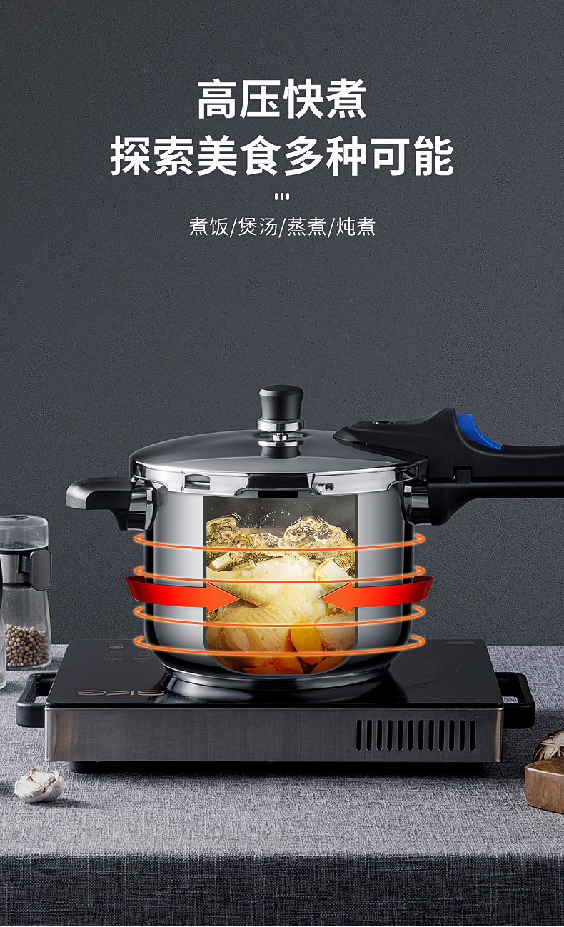 • 商品名称:炊大皇高压锅家用304不锈钢加厚防爆压力锅大容量燃气电磁炉通用