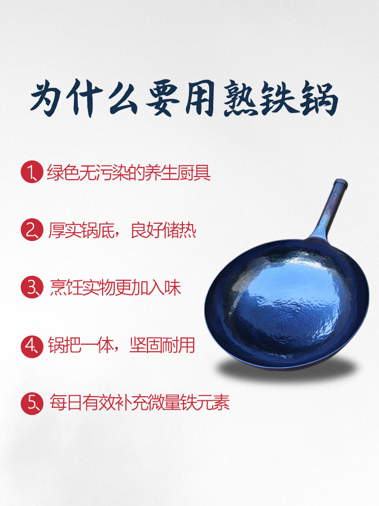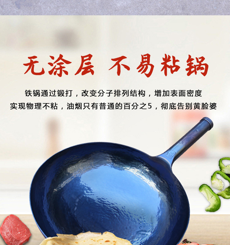 • 商品名称:山东章丘纯手工锻打铁锅正宗老式手打不粘锅官方旗舰商丘炒锅家用