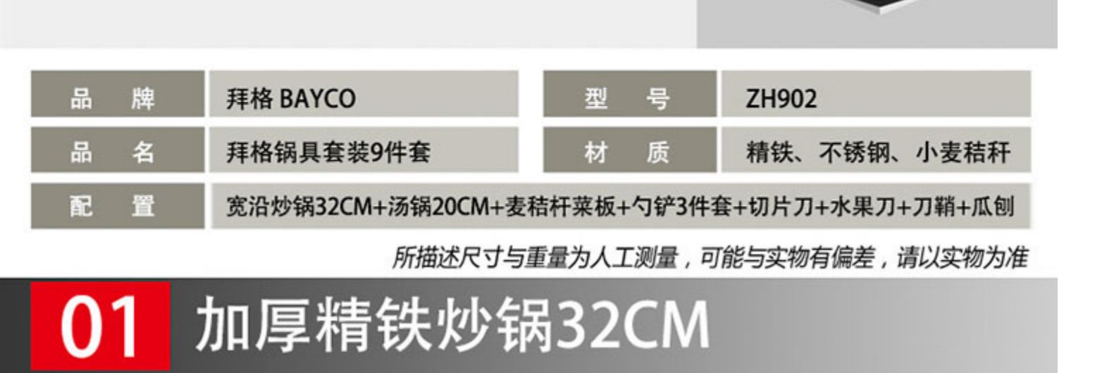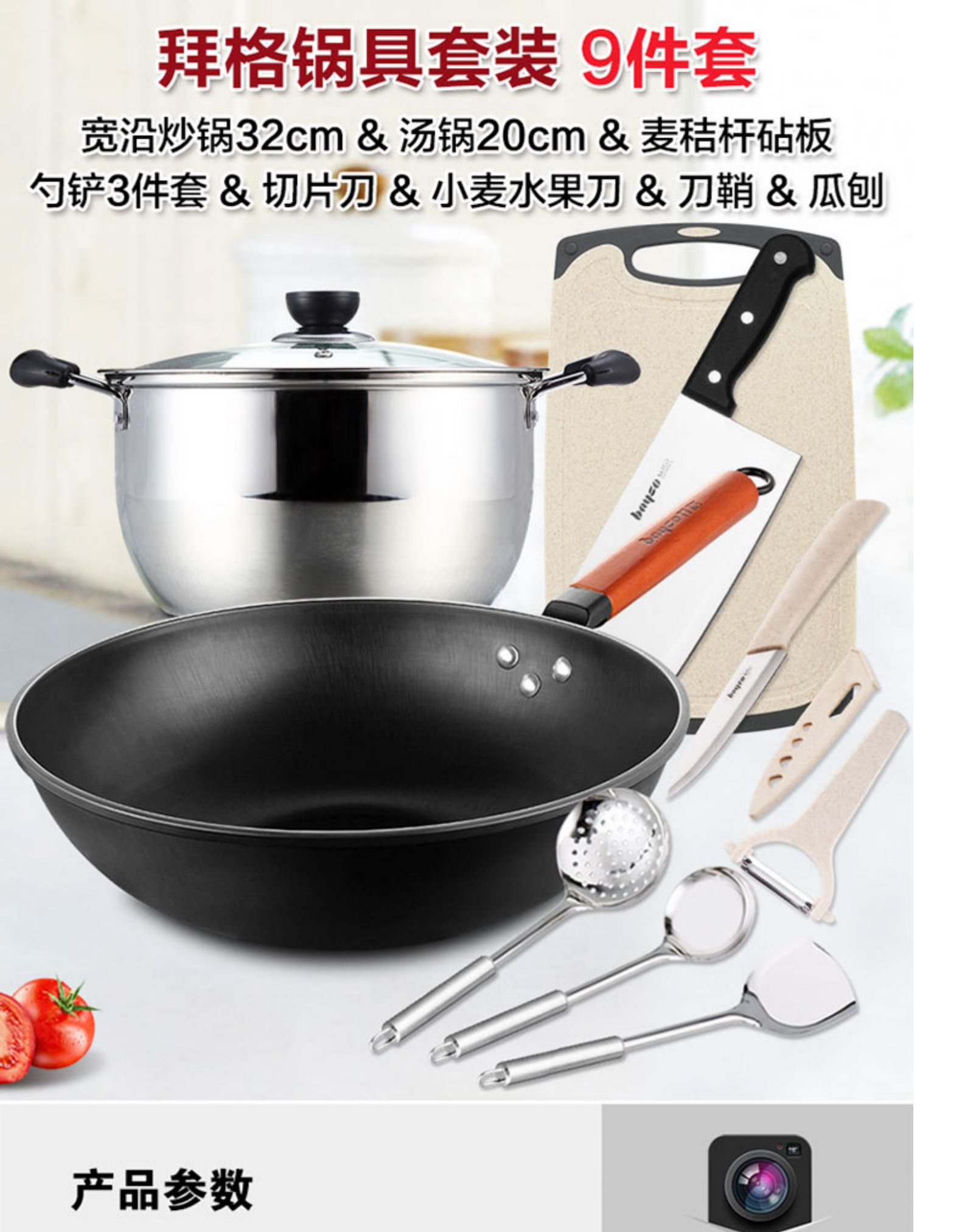 • 商品名称:拜格炒锅煤气灶专用锅具套装厨房厨具全套组合电磁炉锅家用炒菜锅